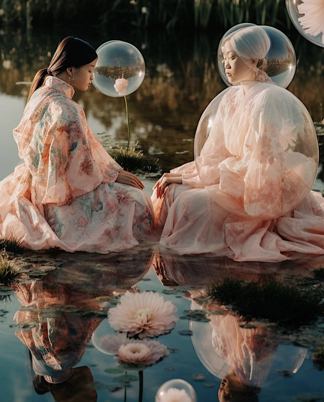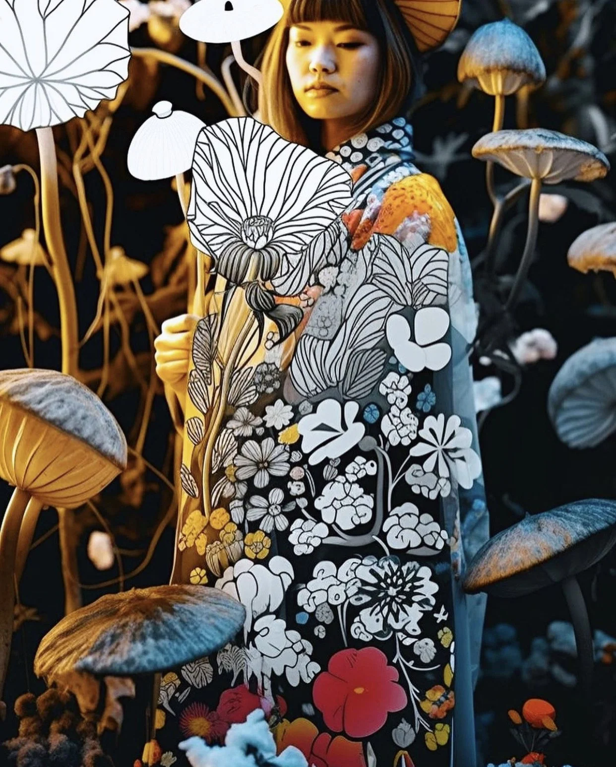 Featuring Bonnie (@bonnietsang), an LA-based AI artist and photographer whose work has inspired many. Each frame captured by Bonnie unfolds a poetic narrative. She blends distinct mediums like paintings, drawings, and photographs with AI to craft an ethereal world awash in pastel hues. Intricate details like delicate flowers, whimsical mushrooms, paper cuts, and bubbles come to life in her compositions.