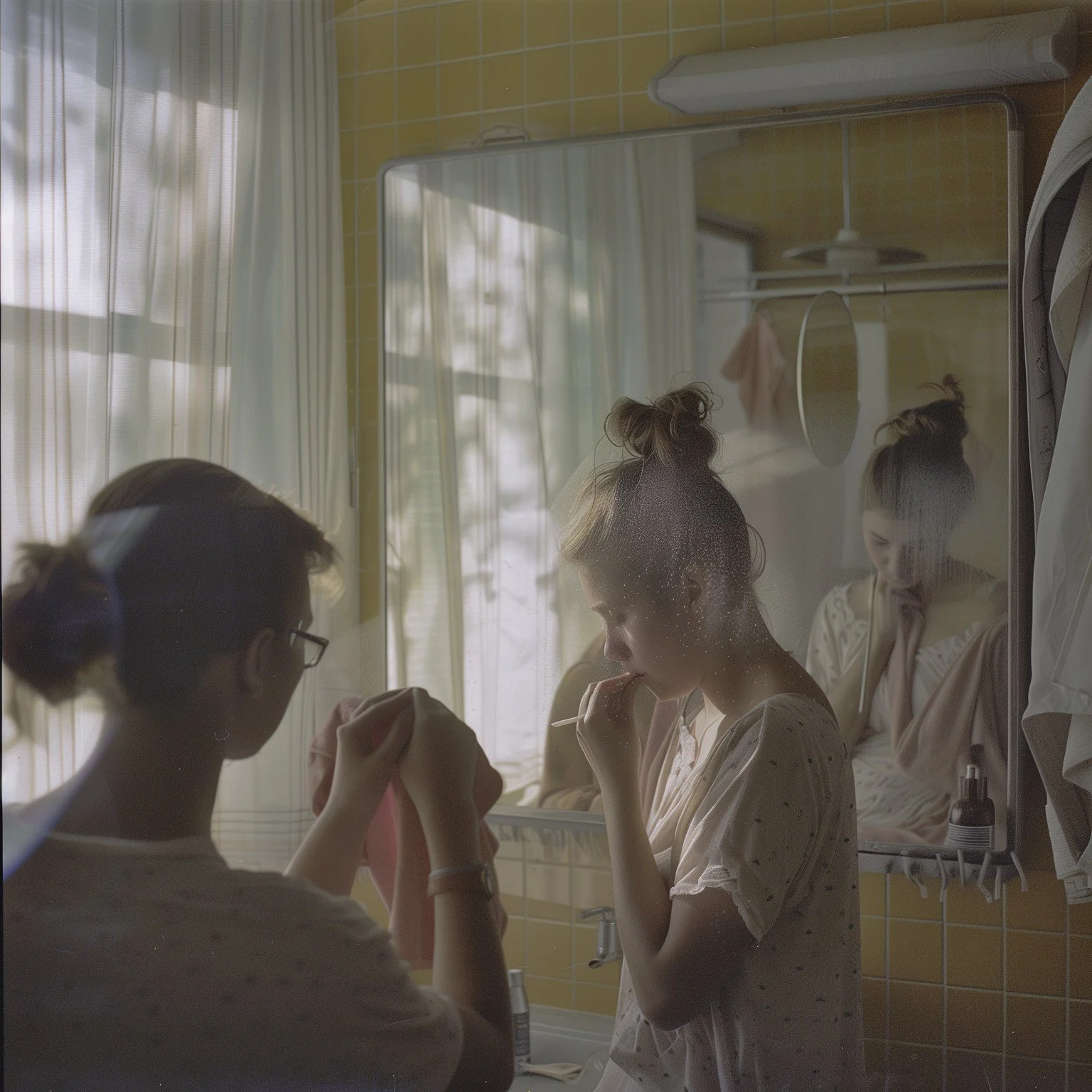 The 3rd and 4th images are part of another documentary AI photo series depicting the life of my youth in a dormitory with my classmates, mainly girls.