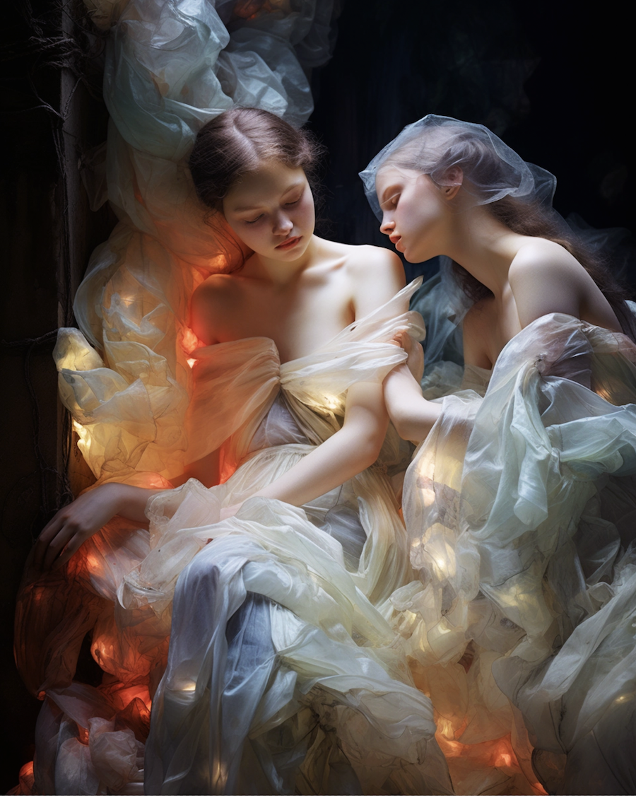 I'm a single mum living in Sydney, Australia. I spent my childhood and teens drawing constantly, and the drawings were always of pretty women in fancy clothing, often of my friends in wedding dresses! I studied Fashion Design when I left school and had a fashion label and 3 boutiques for about 15 years. I then stopped to have kids and started art school, pursuing a bachelor of Fine Art, majoring in painting, which I've nearly finished. This year at school, one of my elected subjects was 'Art in the Digital Age' which covers AI art, and that's how I learned about Midjourney. As soon as I joined up, I was hooked and immediately spent every spare minute creating AI images.